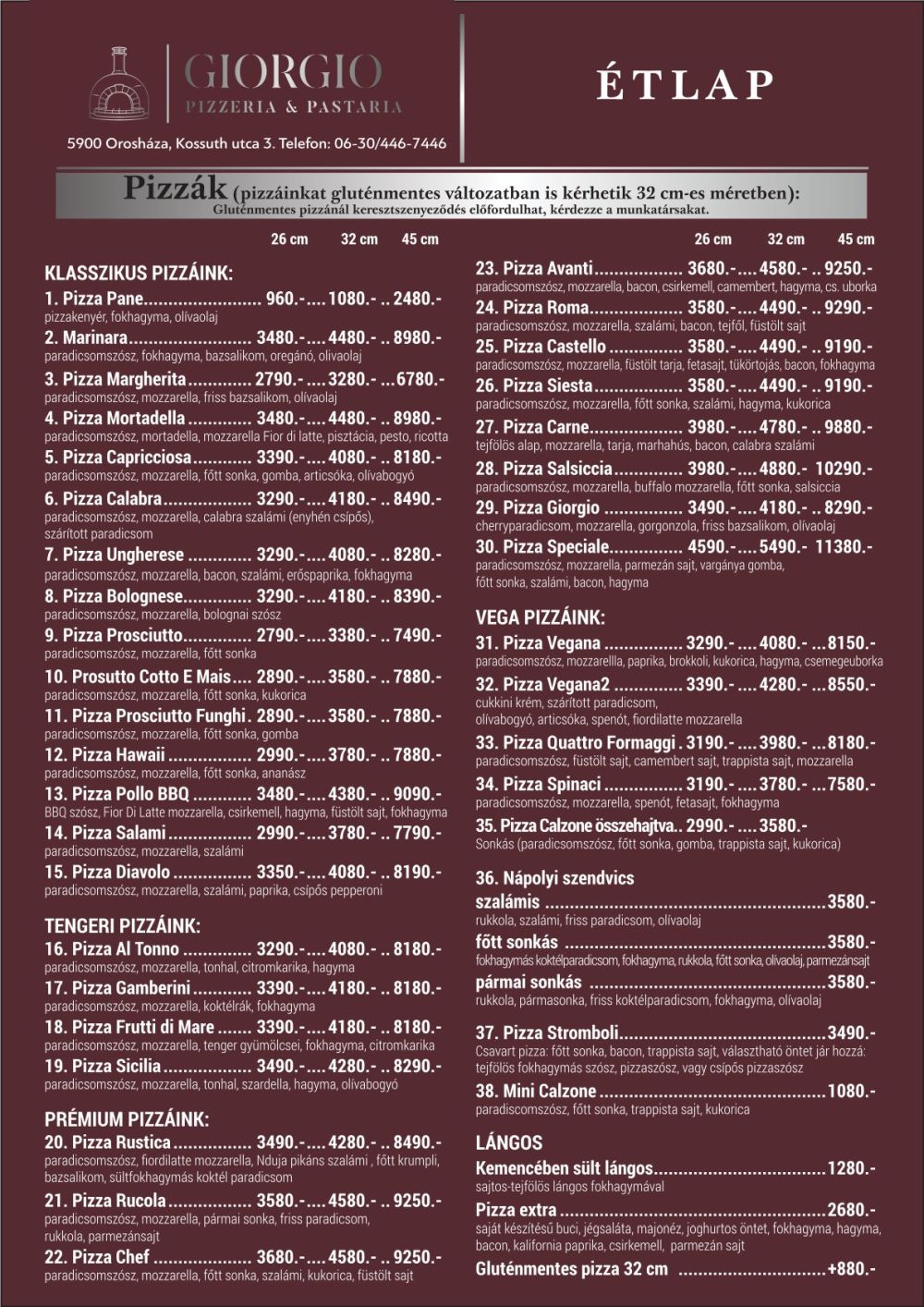 • Pizzák 32 cm
