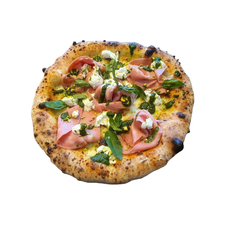 paradicsomszósz, mozzarella Fior di latte, Mortadella , pisztácia, pesto, ricotta