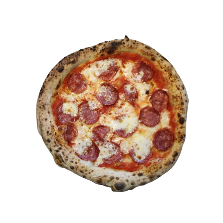 paradicsomszósz, mozzarella sajt (fior di latte), szalámi