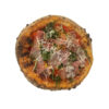 paradicsomszósz, mozarella sajt, sonka, szalámi, kukorica, füstölt sajt