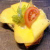 Cheddar sajtos: kenyér, vajkrém, chedarr sajt, trapista sajt, paradicsom.