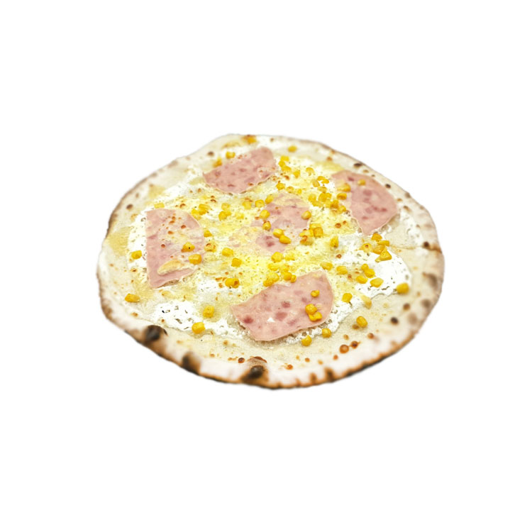 tejfölös fokhagymás alap, sonka, kukorica, sajt